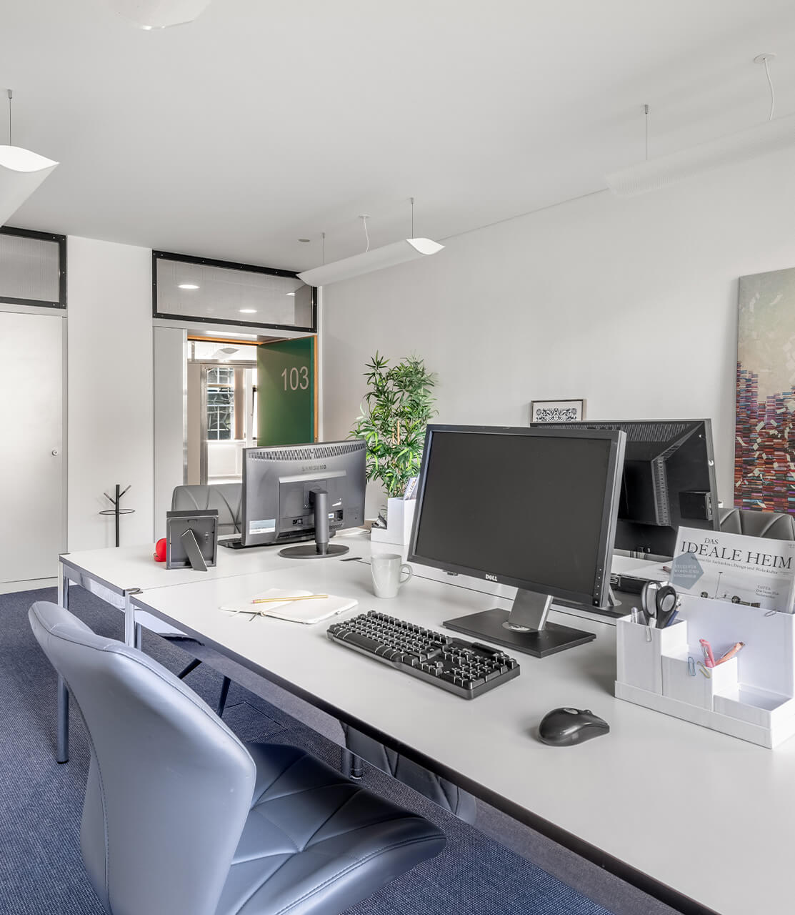 Sie mieten eine oder mehrere Flächen und profitieren vom ersten Moment an von einer funktionierenden Infrastruktur: Ein freundlicher Empfangsraum, wo Sie Ihre Gäste und Kunden dank Empfangssystem persönliche begrüssen.
